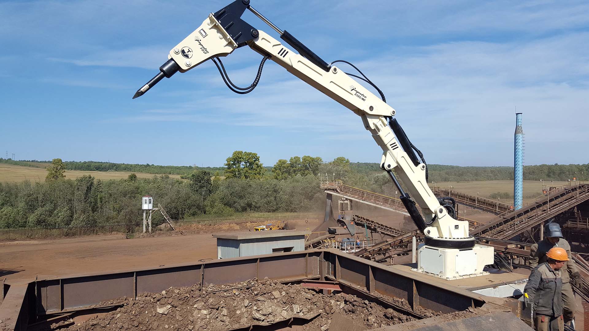 Гидромолоты Impulse 500/600 — работа экскаваторами на вторичном дроблении и тяжёлых отбивках негабарита; также применяются на бутобое крупных дробилок, если конструкция узла это позволяет. Задачи: разрушение крупных кусков, разгрузка горловины, предотвращение зависаний.